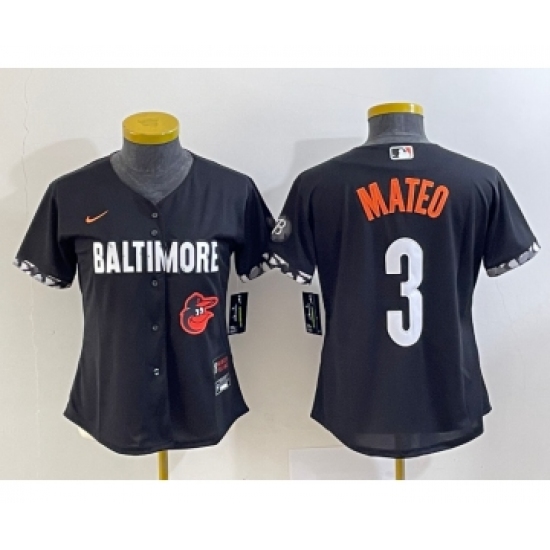 >Youth Baltimore Orioles #3 Jorge Mateo Black 2023 City Connect Cool Base Stitched Jersey