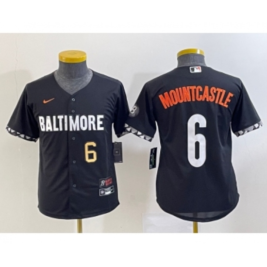 >Youth Baltimore Orioles #6 Ryan Mountcastle Number Black 2023 City Connect Cool Base Stitched Jersey 2
