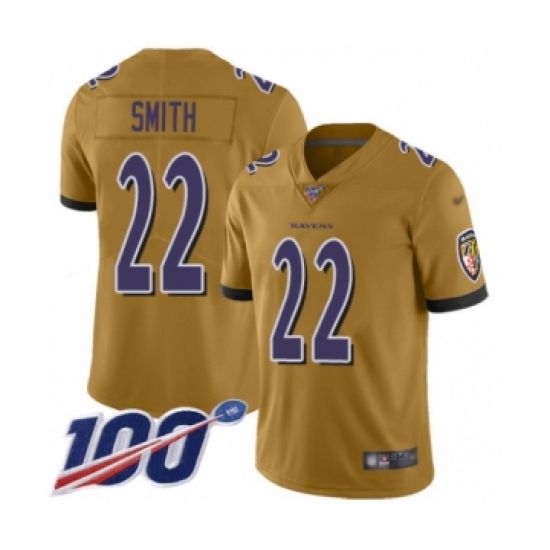 >Youth Baltimore Ravens #22 Jimmy Smith Limited Gold Inverted Legend 100th Season Football Jersey