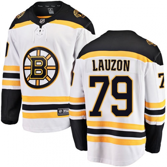 Home>NHL>Boston Bruins>Jeremy Lauzon>Youth Boston Bruins #79 Jeremy Lauzon Authentic White Away Fanatics Branded Breakaway NHL Jersey