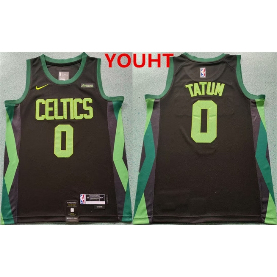 >Youth Boston Celtics #0 Jayson Tatum Black 2024-25 City Edition Statement Edition Stitched Basketball Jersey