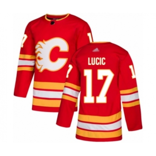 Men's Calgary Flames #17 Milan Lucic Authentic Red Home Hockey Jersey