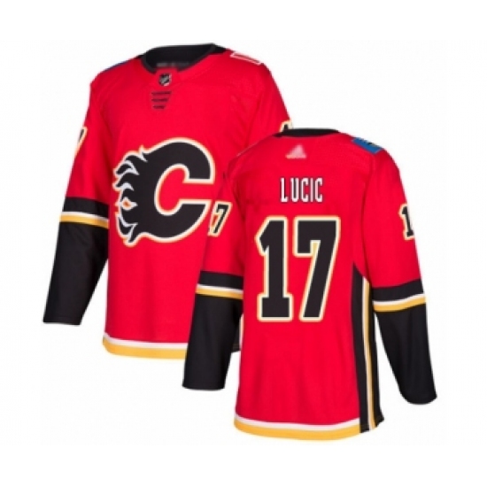 Men's Calgary Flames #17 Milan Lucic Authentic Red Home Hockey Jersey