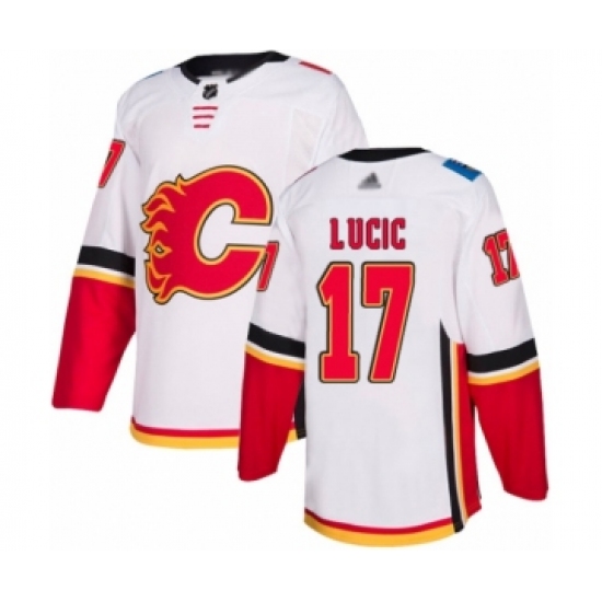 Men's Calgary Flames #17 Milan Lucic Authentic White Away Hockey Jersey