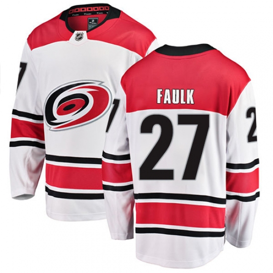 Home>NHL>Carolina Hurricanes>Justin Faulk>Youth Carolina Hurricanes #27 Justin Faulk Fanatics Branded White Away Breakaway NHL Jersey