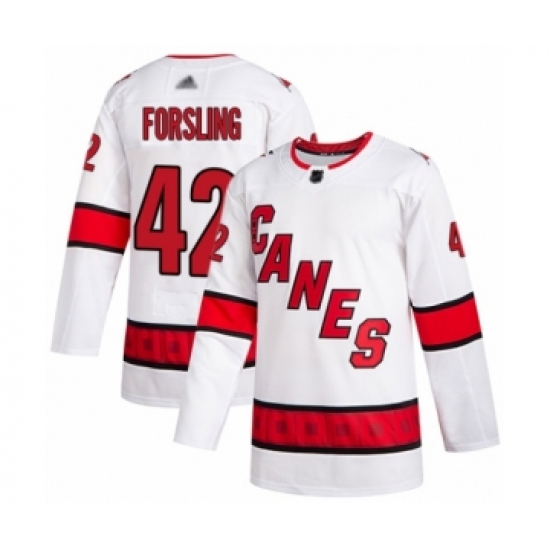 Youth Carolina Hurricanes #42 Gustav Forsling Authentic White Away Hockey Jersey