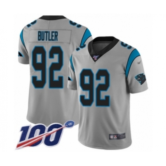 Women's Carolina Panthers #92 Vernon Butler Silver Inverted Legend Limited 100th Season Football Jersey