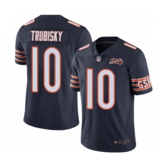 >Youth Chicago Bears #10 Mitchell Trubisky Navy Blue Team Color 100th Season Limited Football Jersey