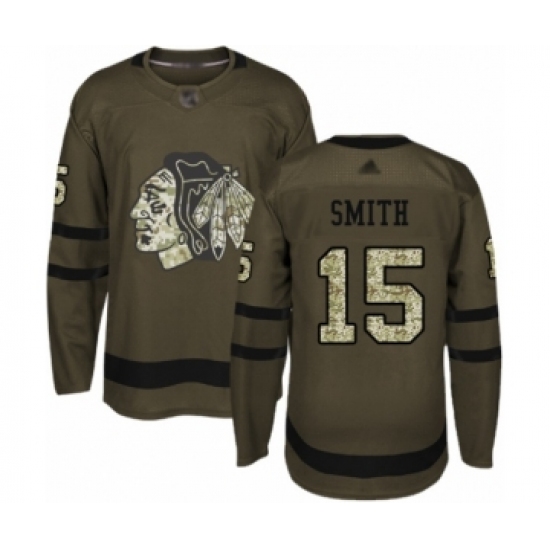 Men's Chicago Blackhawks #15 Zack Smith Authentic Green Salute to Service Hockey Jersey
