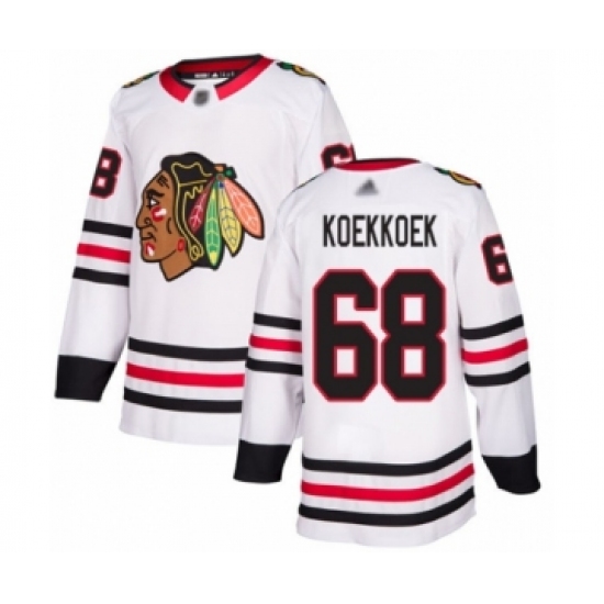 Men's Chicago Blackhawks #68 Slater Koekkoek Authentic White Away Hockey Jersey