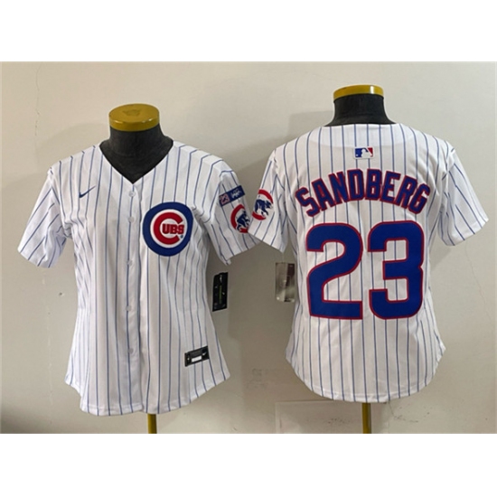 >Youth Chicago Cubs #23 Ryne Sandberg White Pinstripe 'Ryne Sandberg Tribute' Vapor Limited V3 Stitched Baseball Jersey