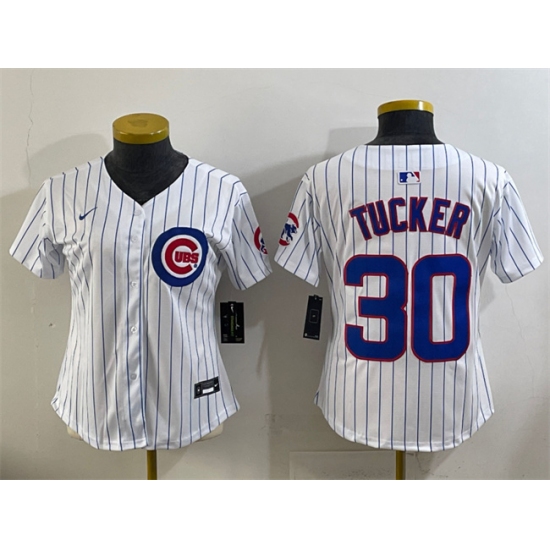 >Youth Chicago Cubs #30 Kyle Tucker White Home Limited Stitched Baseball Jersey