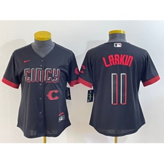 Women's Cincinnati Reds #11 Barry Larkin Number Black 2023 City Connect Cool Base Stitched Jersey2