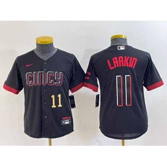 Youth Cincinnati Reds #11 Barry Larkin Number Black 2023 City Connect Cool Base Stitched Jersey