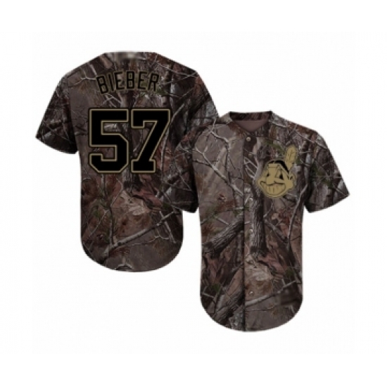 Youth Cleveland Indians #57 Shane Bieber Authentic Camo Realtree Collection Flex Base Baseball Jersey