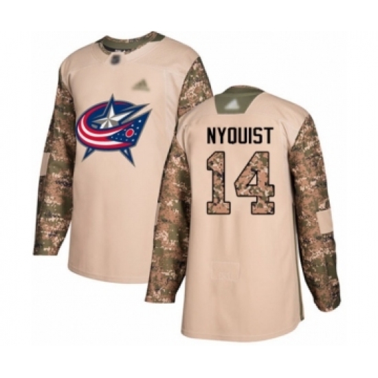 Youth Columbus Blue Jackets #14 Gustav Nyquist Authentic Camo Veterans Day Practice Hockey Jersey