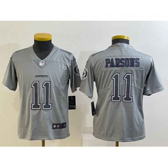 >Youth Dallas Cowboys #11 Micah Parsons Grey Atmosphere Fashion 2022 Vapor Untouchable Stitched Nike Limited Jersey