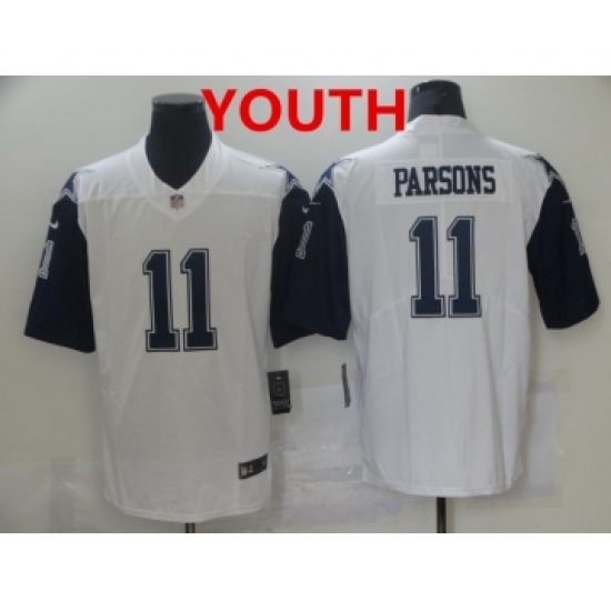 >Youth Dallas Cowboys #11 Micah Parsons White 2021 Color Rush Stitched NFL Nike Limited Jersey