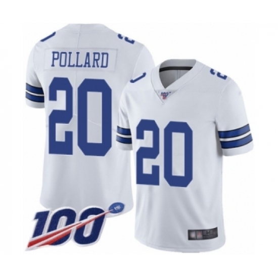 >Youth Dallas Cowboys #20 Tony Pollard White Vapor Untouchable Limited Player 100th Season Football Jersey