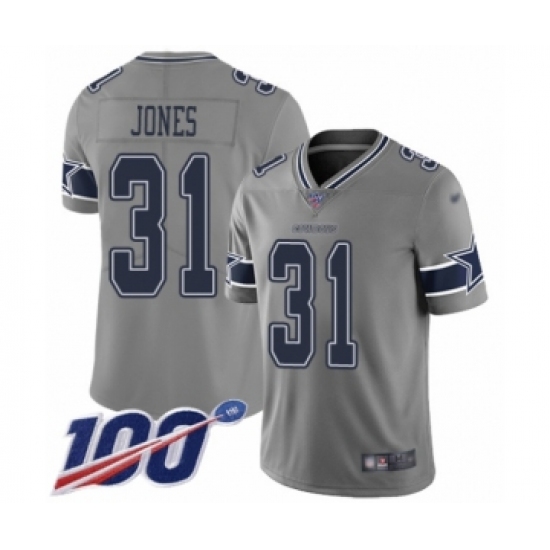 >Youth Dallas Cowboys #31 Byron Jones Limited Gray Inverted Legend 100th Season Football Jersey