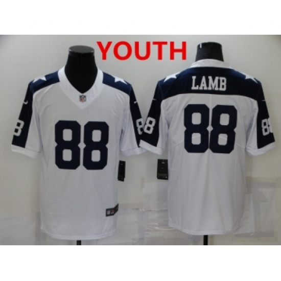 >Youth Dallas Cowboys #88 CeeDee Lamb White Thanksgiving Vapor Untouchable Stitched NFL Nike Limited Jersey