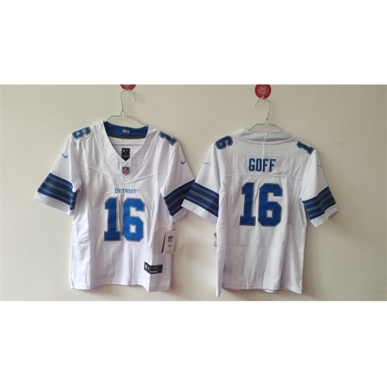 >Youth Detroit Lions #16 Jared Goff White 2024 F.U.S.E. Vapor Limited Stitched Jersey
