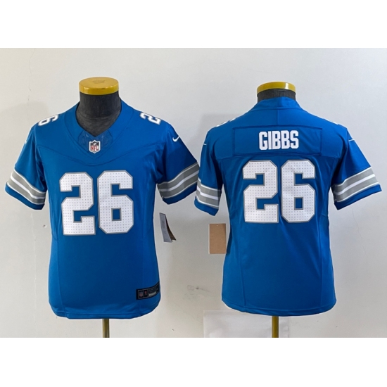 >Youth Detroit Lions #26 Jahmyr Gibbs Limited Blue 2024 FUSE Vapor Jersey