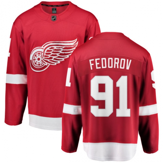 Home>NHL>Detroit Red Wings>Sergei Fedorov>Youth Detroit Red Wings #91 Sergei Fedorov Fanatics Branded Red Home Breakaway NHL Jersey
