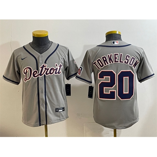 >Youth Detroit Tigers #20 Spencer Torkelson Gray Cool Base Stitched Baseball Jersey