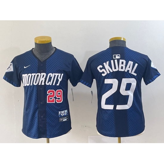 >Youth Detroit Tigers #29 Tarik Skubal Navy 2024 City Connect Cool Base Limited Stitched Jerseys