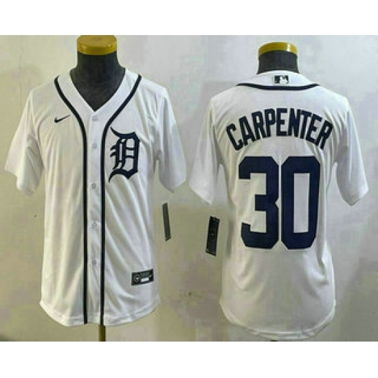 >Youth Detroit Tigers #30 Kerry Carpenter White Cool Base Stitched Jersey