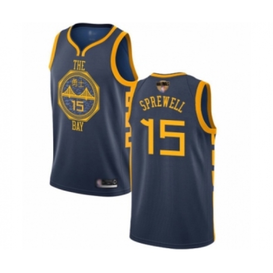 Men's Golden State Warriors #15 Latrell Sprewell Swingman Navy Blue Basketball 2019 Basketball Finals Bound Jersey - City Edition