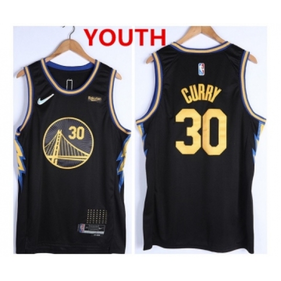 Youth Golden State Warriors #30 Stephen Curry 75th Anniversary Black Stitched Basketball Jersey