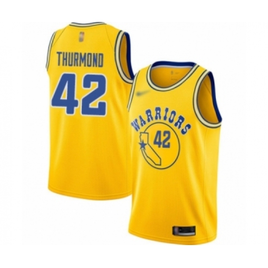 Women's Golden State Warriors #42 Nate Thurmond Swingman Gold Hardwood Classics Basketball Jersey