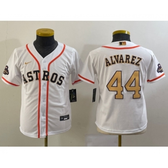 Youth Houston Astros #44 Yordan Alvarez 2023 White Gold World Serise Champions Cool Base Stitched Jersey