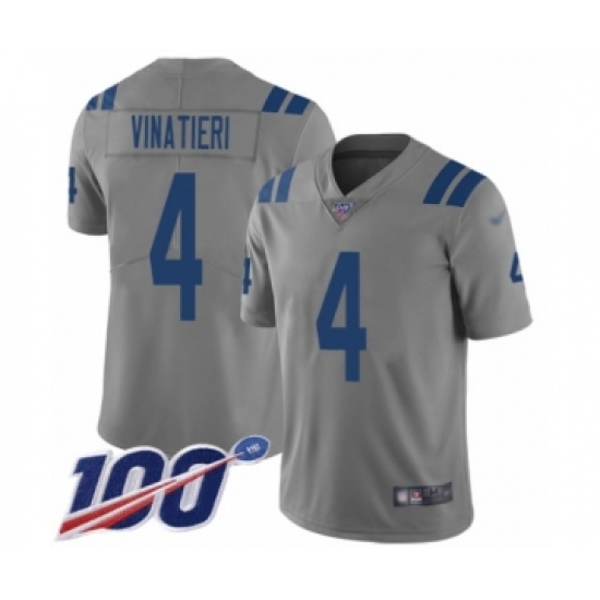 >Youth Indianapolis Colts #4 Adam Vinatieri Limited Gray Inverted Legend 100th Season Football Jersey