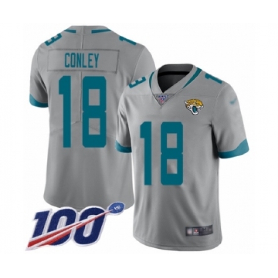 >Youth Jacksonville Jaguars #18 Chris Conley Silver Inverted Legend Limited 100th Season Football Jersey