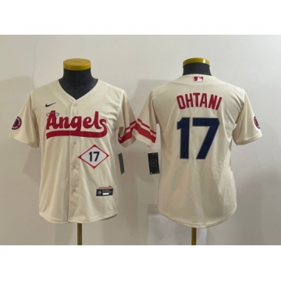 Youth Los Angeles Angels #17 Shohei Ohtani Number Cream 2022 City Connect Cool Base Stitched Jersey