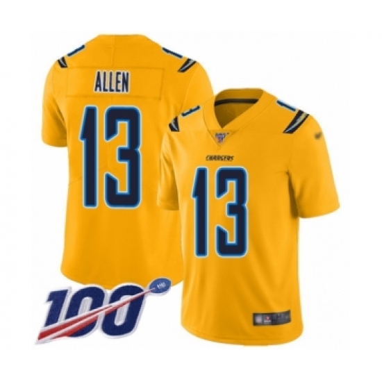 >Youth Los Angeles Chargers #13 Keenan Allen Limited Gold Inverted Legend 100th Season Football Jersey