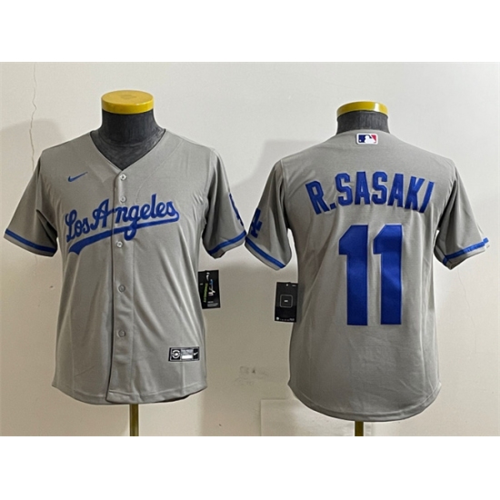 Youth Los Angeles Dodgers #11 Roki Sasaki Grey Cool Base Stitched Baseball Jerseys