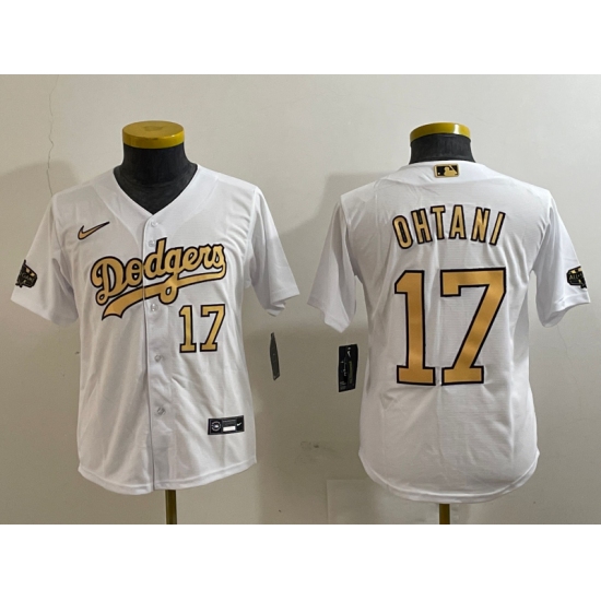 >Youth Los Angeles Dodgers #17 Shohei Ohtani Number White 2022 All Star Stitched Flex Base Nike Jersey