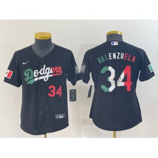 Youth Los Angeles Dodgers #34 Toro Valenzuela Mexico Number Black Cool Base Stitched Baseball Jersey