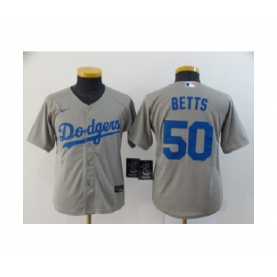 Youth Los Angeles Dodgers #50 Mookie Betts Royal Gray 2020 Cool Base Jersey
