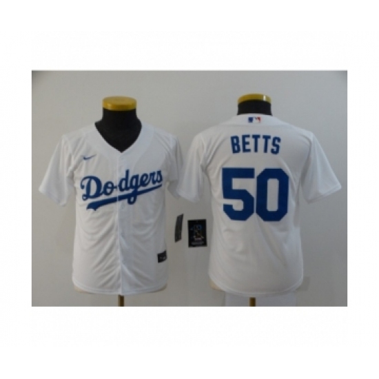 >Youth Los Angeles Dodgers #50 Mookie Betts White 2020 Cool Base Jersey