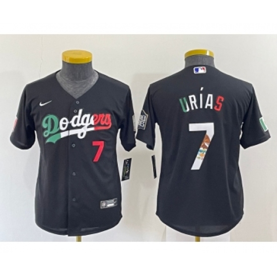 >Youth Los Angeles Dodgers #7 Julio Urias Black Mexico Number 2020 World Series Cool Base Nike Jersey