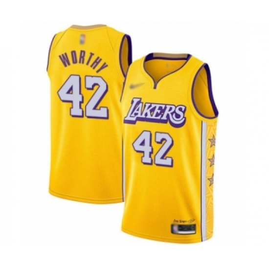 Women's Los Angeles Lakers #42 James Worthy Swingman Gold Basketball Jersey - 2019 20 City Edition