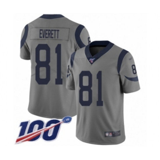 >Youth Los Angeles Rams #81 Gerald Everett Limited Gray Inverted Legend 100th Season Football Jersey