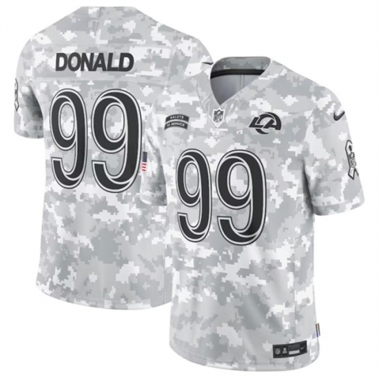 >Youth Los Angeles Rams #99 Aaron Donald 2024 F U S E Arctic Camo Salute To Service Limited Stitched Football Jersey