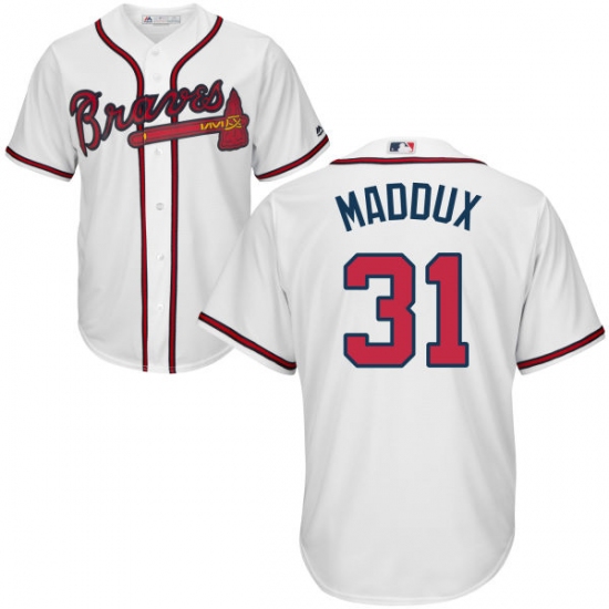 Home>MLB>Atlanta Braves>Greg Maddux>Youth Majestic Atlanta Braves #31 Greg Maddux Authentic White Home Cool Base MLB Jersey