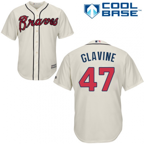 Home>MLB>Atlanta Braves>Tom Glavine>Youth Majestic Atlanta Braves #47 Tom Glavine Authentic Cream Alternate 2 Cool Base MLB Jersey